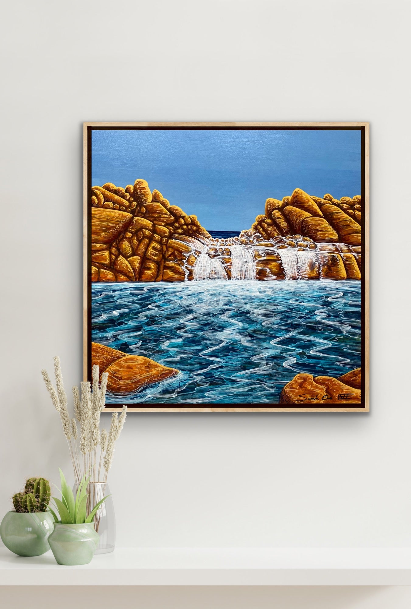 Injidup Natural Spa is a place where tenderness and force exist side by side. Sheltered by sculpted rock and constantly replenished by the ocean, the pool offers a moment of calm while never letting you forget the immense power just beyond its edges. This painting emerged from spending time observing that tension—between protection and exposure, stillness and movement.